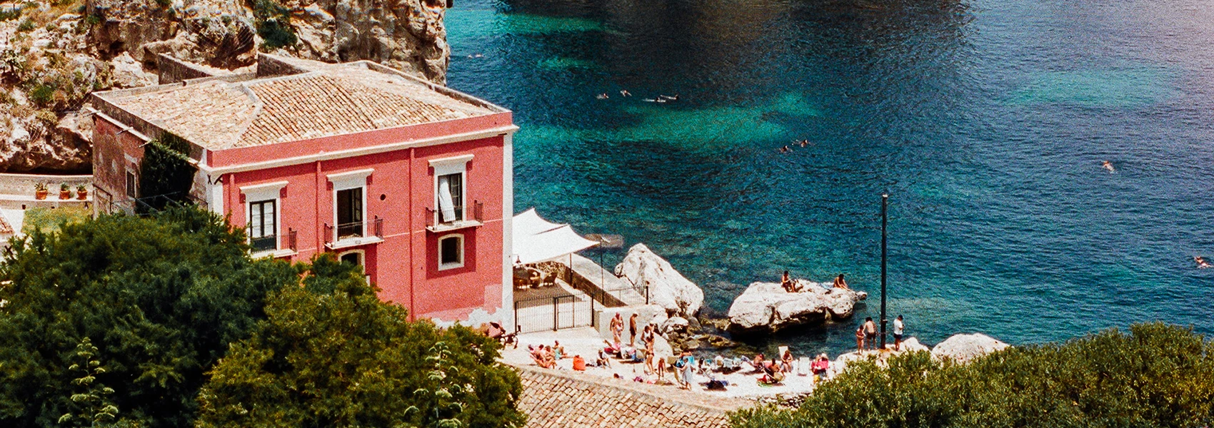 Au quelques encablures des côtes siciliennes, l’archipel des Egades, poignée d’îles austères et lumineuses, dures à vivre, douces à explorer en été. Depuis les quais assoupis du port de Trapani, on rejoint Favignana en ferry, posée à seulement 15 km des côtes siciliennes. De yachts effilés en barques bleues, de maisons pastel en guirlandes de lampions, la plus grande des trois îles est la villégiature la plus secrète des Siciliens. L’oeil est ébloui par une mer transparente et turquoise, aux allures tropicales, l’esprit envoûté par la force d’une nature sauvage et minérale. Sur les plages de galets et de sable, les éclats de corail se ramassent à la pelle.