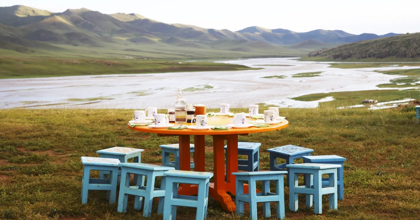 Installation pour cinq nuits au cœur du parc national de la vallée de l’Orkhon, dans un camp de yourtes traditionnelles. A quelques mètres, la rivière qui coule paisiblement et, autour, les montagnes couvertes de forêt d'altitude. Le blanc des toiles de yourtes se détache des étendues vertes de ces paysages infinis. Elles ne les dénaturent pas, elles rappellent qu'on est ici en terres nomades, aux racines de la culture mongole. Mais il faut bien reconnaître que le camp va au-delà de la rusticité de la vie des peuples ancestraux. Les yourtes sont, certes, traditionnelles, aussi bien dans leur structure que dans leur décoration, mais leur confort répond à des standards occidentaux. Les couleurs vives, reprises en écho sur les meubles et aux "murs", les rendent gaies, agréables, on prend du plaisir à s'y retrouver après une journée d'activités en plein air. Un puits de lumière permet d'amener à l'intérieur un peu du ciel mongol. Les repas ont lieu dans une atmosphère chaleureuse, conviviale, sous la toile d'une vaste yourte prévue spécialement pour les moments de partage. Le soir, on peut y assister à un concert de piano ou, parfois, à une représentation donnée par des artistes de passages, avant de dîner à la bougie. Dans l'assiette, des mets traditionnels du pays, dont les célèbres buuz - des raviolis farcis à la viande - mais aussi des plats plus internationaux, des nouilles faites à la main, du poisson fraîchement pêché et des viandes grillées, pour varier les plaisirs. Les repas s'accompagnent de vin ou de vodka nationale.