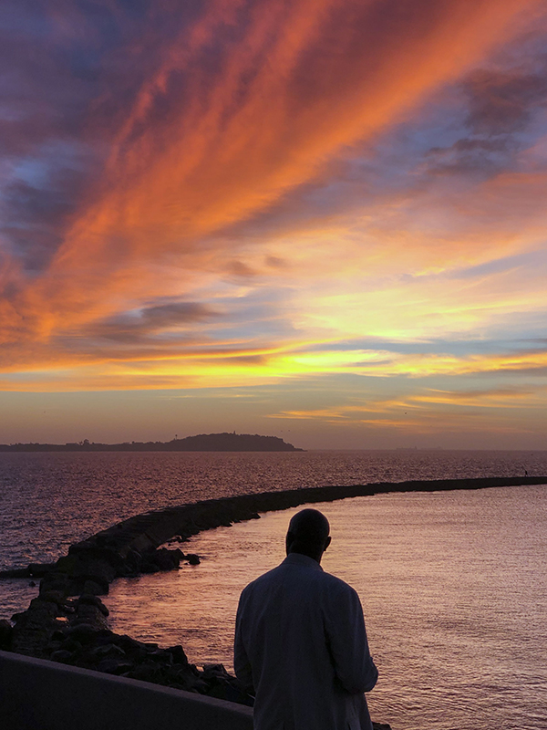À une demi-heure de bateau depuis la gare maritime, on rejoint l’île de Gorée. On visite la Maison des Esclaves, monument de mémoire, en souvenir du destin tragique des millions d’hommes et de femmes déportés outre-Atlantique : chaque pièce, chaque pierre porte la mémoire de la traite négrière. Mais visiter Gorée, c’est aussi s’éloigner de l’agitation de Dakar pour goûter à la quiétude d’un village hors du temps, avec ses maisons pourpres aux volets bleu délavés par le sel et le vent, ses jardins de palmiers et ses bougainvilliers en fleurs. L’air est plus frais qu’à Dakar, le rythme plus tranquille : sur les marches usées par le temps, quelques chats paresseux somnolent à l’ombre, indifférents aux enfants qui jouent au ballon. Alors on flâne au fil des ruelles pavées, pour goûter le charme d’un moment suspendu.