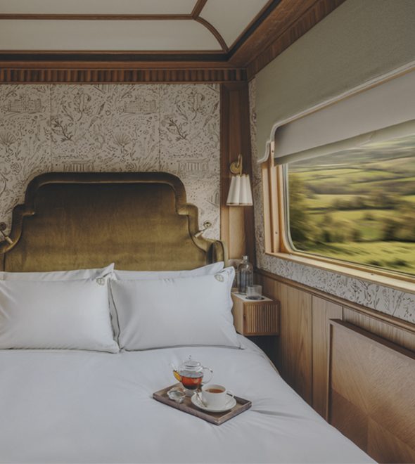 Et si le slow travel était le summum du luxe ? Après le Royal Scotsman, Belmond semble le prouver avec un nouveau train d’exception : le Britannic Explorer. Des Cornouailles au Pays de Galles, en passant par le Lake District, chaque itinéraire est une immersion enchantée dans les paysages les plus emblématiques de Grande-Bretagne. Embarquez pour une expérience so british ! @Belmond/Salva Lopez/ Britannic Explorer Comme un rêve victorien Le voyage commence sur le quai d’une gare londonienne.