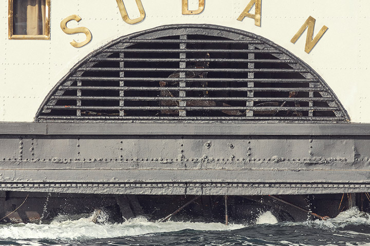 On est accueillis à bord par les mots caressants d’Amir Attia, le directeur de l’embarcation : “Quel que soit le plus minuscule de vos dé- sirs, le mieux caché, je vous prie de l’exprimer dans l’instant, il est sans doute en mon humble pouvoir de le satisfaire…” Il parle français avec un inimitable accent oriental, angles sonores polis au sucre qui valent à eux seuls un voyage… Le Steam Ship Sudan est un reflet du passé sur l’eau : larges coursives en teck, chaises de palme tressée, roues à aubes, et même bielles poussées à la vapeur…