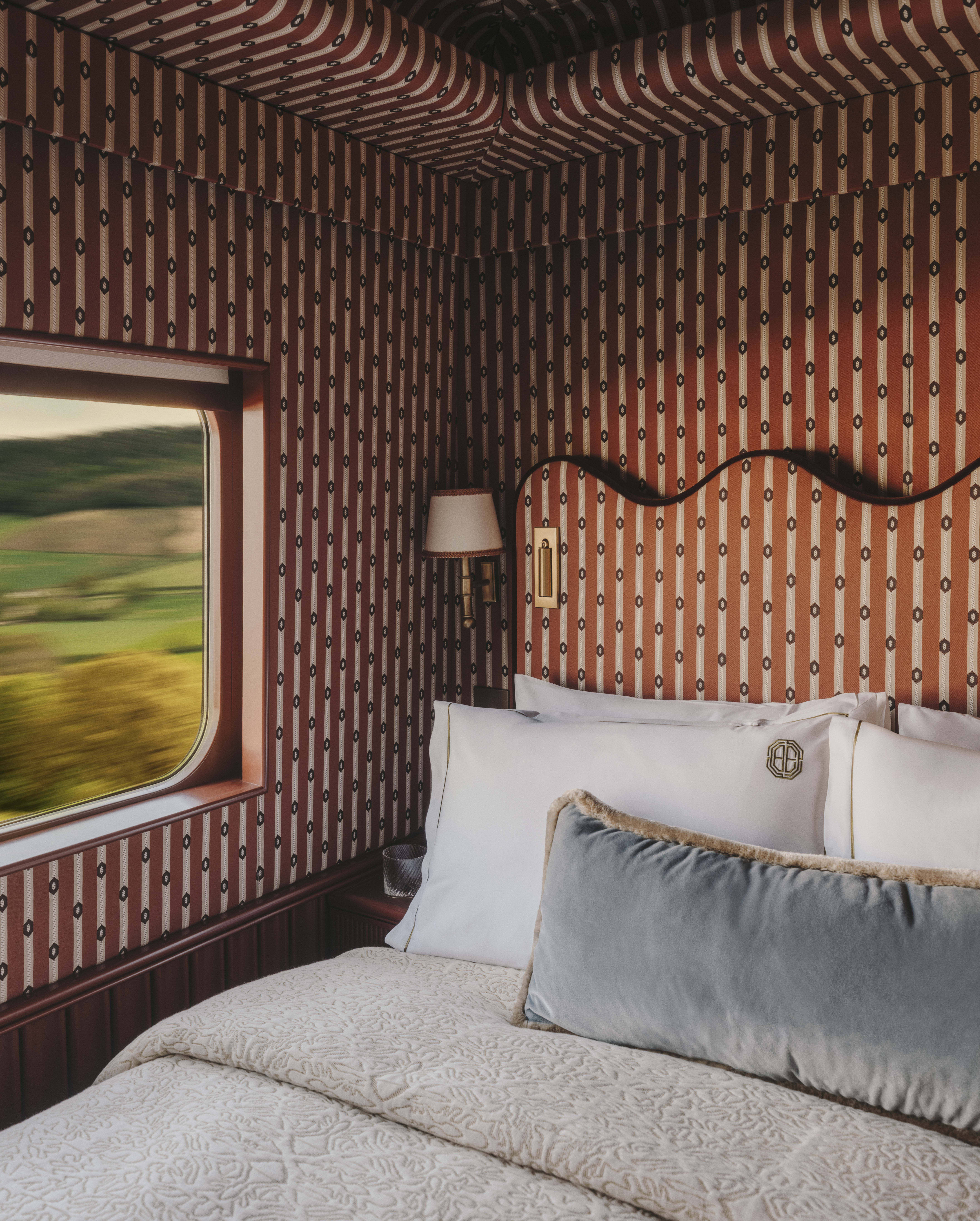Le voyage commence sur le quai d’une gare londonienne. Lentement, sur une voie de Victoria station, le train apparaît, tel un mirage sorti d’un roman victorien. Les wagons vernis reflètent les lueurs du matin. Le ton est donné : l’expérience sera hors du commun. Dernier-né des trains Belmond, le Britannic Explorer s’est donné une mission : rendre aux rails britanniques leur panache et leur élégance. Mission accomplie. Les 18 cabines – dont trois grandes suites – marient bois clair et textiles inspirés par les paysages traversés. Pour la décoration, Belmond a réuni artistes et artisans parmi les plus talentueux du pays. Le studio Albion Nord a dessiné l’ambiance feutrée de chaque voiture avec une ligne directrice claire détaillée par la designer Rebecca Floyd : « célébrer l'identité britannique en s’inspirant fortement des symboles qui la caractérisent, de la majesté et du confort des demeures seigneuriales à la beauté éthérée et aux textures qui composent les paysages ». Afin d’y parvenir, le studio a collaboré avec des créateurs géniaux comme Olly Fathers ou Sarah Woods. Résultat : une atmosphère cosy, raffinée, teintée d’humour et d’excentricité. Bref, un manifeste roulant pour une vision british du luxe et de l’hospitalité.
