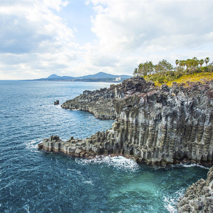 L’île de Jeju garde précieusement les derniers hectares de forêt subtropicale qui autrefois couvrait l’Asie de l’Himalaya au Japon. Ainsi, érables sycomores, chênes de Mongolie, styrax japonais déploient leurs branches sur ce royaume volcanique vieux de 800 000 ans. Un cabochon naturel cerclé d’orgues de basalte, taraudé d’exceptionnels tunnels de lave – le plus beau réseau au monde selon l’UNESCO –, et serti de lacs émeraude doublé de cascades. Au pied de celle de Cheonjiyeon (le ciel et la terre reliés) les jeunes mariés ont coutume de rendre hommage à Samda-do, “la terre des trois abondances”. Opulence de roche, du sous-sol aux Dol hareubang, les grands-pères de pierres protégeant les villages, jusqu’aux murets abritant ses vergers d’un autre atout de Jeju : le vent, qui balaie les toits de chaumes et fait danser les rubans de prières. Ultime richesse de l’île : ses femmes. À la fois guérisseuses détenant l’ancestral savoir chamanique, et robustes plongeuses haenyos qui pêchent en apnée jusqu’à 20 mètres. Petit paradis de la randonnée, Jeju cache aussi de belles plages, de sable blanc. Énième surprise off erte contre toutes attentes par ce pays.