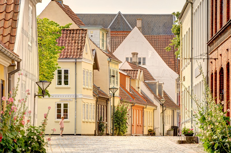 Odense, troisième ville du Danemark, à deux heures de route à l’ouest de Copenhague, est la ville natale de Hans Christian Andersen (1805-1875). L’enfance, l’imaginaire, la poésie sont en phase avec le hygge ; on ne peut pas rêver meilleur endroit pour le mettre en pratique. Le plus célèbre des auteurs de contes de fées a écrit La reine des neiges, mais aussi La petite sirène, La petite poucette, La petite fille aux allumettes, Le vilain petit canard... La maisonnette à la façade jaune bouton d’or où il est né en 1805 est toujours là, qui lui a inspiré celle de Kay et Gerda, dans La reine des neiges. Un peu plus loin, le H.C. Andersen’s Hus, ou musée des contes de fées, ouvert en 2021, est dédié à la vie et à l’œuvre du célèbre conteur. L’architecte japonais Kengo Kuma l’a conçu tout en volumes courbes, comme pour emporter les visiteurs dans les univers décrits par Andersen. Les installations interactives, immersives et spectaculaires qui mettent en scène les contes emportent effectivement petits et grands. Dans le joli jardin du musée, le chemin serpente entre les mares et autres miroirs d’eau, la végétation protège les petites places des regards… C’est un espace propice à la rêverie et à l’imagination. Mais on aime aussi se balader dans la ville, au fil de ses petites ruelles pavées, où les pimpantes maisonnettes XVIe et XVIIe aux façades colorées semblent tout droit sorties d’un conte de fées.