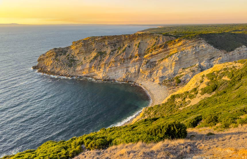 Les Portugais adorent la côte sud de l’Alentejo, une étendue intacte de petites collines, de falaises balayées par les vagues et de petites stations balnéaires regroupées autour de criques sablonneuses idylliques. L’ancien petit village de pêcheurs de Porto Côvo est le point de départ idéal pour accéder aux plages. Destination de weekend prisée des Lisboetes, Porto Côvo se remplit au mois d’août. Le reste de l’année, le village vit au son de la brise de l’Atlantique. La plage la plus proche, au nord, est un triangle de sable abrité au creux des falaises qui donne ensuite sur la Praia Grande, qui porte bien son nom de grande plage. Des chemins longent les falaises au nord et au sud du village et permettent l’accès aux autres plages telles que la Praia da Samouqueira, qui tient son nom de ses extraordinaires formations rocheuses.