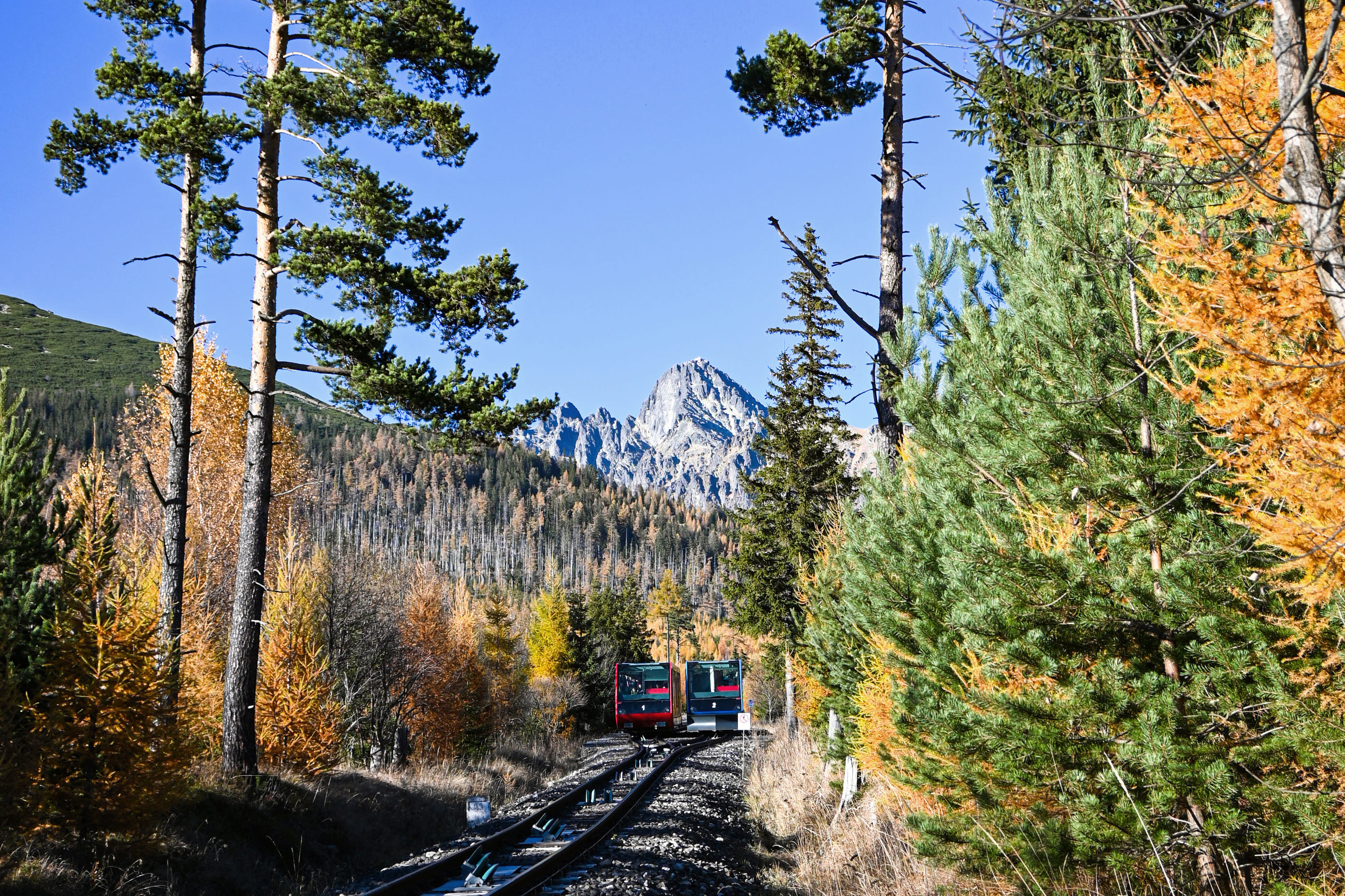 De Štrbské Pleso, on peut rejoindre Starý Smokovec à bord de la Tatra Electric Railway (TEŽ), un train de montagne qui serpente à travers forêts, vallées et villages pittoresques. La ligne multiplie les panoramas éblouissants sur les sommets escarpés et les crêtes dentelées, révélant l’ampleur et la diversité du massif. Accessible à tous, ce trajet transforme un simple transfert en une promenade contemplative au cœur des montagnes et permet de profiter d’une perspective différente sur les Hautes Tatras, depuis les vallées jusqu’aux cimes.