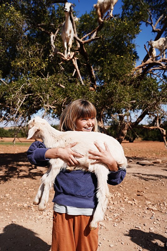 Marrakech est particulièrement belle en hiver, avec ses murailles ocre et ses rangées de palmiers sous un ciel bleu azur. Dans la médina, les enfants goûtent à la vie de village, de marchés en fours à pain. Les adultes aiment aussi les plaisirs contemporains, un soin au hammam ou une virée shopping, un verre dans les jardins Majorelle. Ensuite, on s’installe aux portes de la ville, dans un campement au cœur du désert, avec à l'horizon les sommets enneigés de l’Atlas. Un atelier de poterie, une course dans le sable et une balade à dos de dromadaire, puis on reprend la route, jusqu’à Essaouira la blanche. Fraîche, vivifiante, elle a le goût de vent et de soleil.