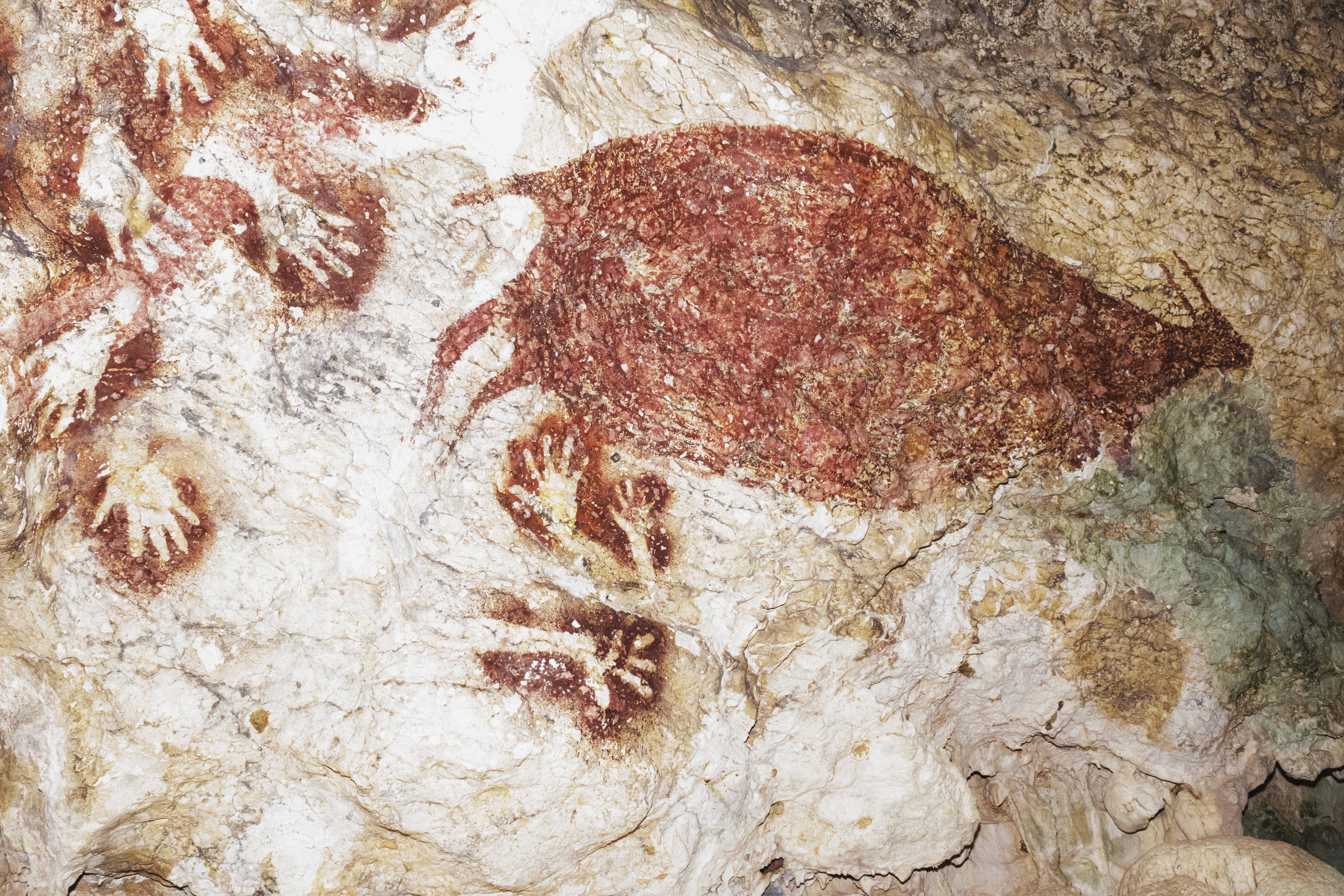Au nord de Makassar, la route traverse les paysages spectaculaires du karst de Maros. À Rammang Rammang, pitons calcaires dressés comme des cathédrales naturelles, rizières miroitantes et rivières lentes composent un décor presque irréel. On y avance en pirogue, au ras de l’eau, entre falaises trouées de cavités. Le silence n’est rompu que par le clapotis et le chant des oiseaux. Par endroits, des papillons traversent la lumière, et la chaleur humide enveloppe les épaules comme une seconde peau. C’est dans ces grottes de Maros-Pangkep que des chercheurs ont identifié des peintures pariétales datées d’environ 68000 ans grâce aux analyses uranium-thorium des dépôts calcaires. Cochons sauvages endémiques, silhouettes humaines, scènes de chasse, pochoirs de mains obtenus en soufflant des pigments naturels : ces figures déplacent le centre de gravité de l’histoire de l’art. Bien avant les fresques européennes, l’homme – ou l’un de ses proches ancêtres – composait déjà des images complexes, symboliques. Le geste était simple, mais l’intention déjà immense : fixer le monde, le raconter, peut-être l’apprivoiser. Les archéologues estiment que de nombreuses cavités restent inexplorées dans cette vaste région karstique. L’humidité et le temps fragilisent les parois, rendant la préservation urgente. Se tenir face à ces pigments ocre, c’est éprouver une émotion rare, celle d’un face-à-face avec les premiers gestes créateurs de l’humanité.