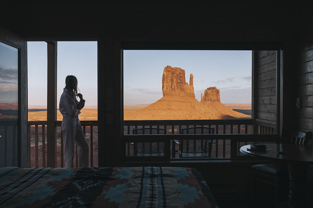 Le buffet du petit déjeuner est indécent et nous les observons, un peu ahuris, emplir leurs assiettes de hashbrown, bacon, œufs brouillés et gaufres noyées sous le sirop d’érable. À Wahweap Marina, nous prenons possession de notre houseboat. Les kids sont surexcités, et nous un peu anxieux à l’idée de manœuvrer cette maison ɦottante. Une fois l’engin bien en main, nous nous frayons un chemin à travers les méandres du lac aux quatre-vingt-seize canyons. Notre destination : le Rainbow Bridge, une arche de roche enjambant le lac, l’un des plus grands ponts naturels au monde. L’après-midi, nous jetons l’ancre à l’ombre d’un canyon pour nous balader en paddle. Les chutes se multiplient et les fous rires nous sont renvoyés en écho par les immenses murs naturels. Le soir, nous jouons aux cartes sur le pont supérieur. On peut rester ici pour toujours ? De retour sur la terre ferme, nous restons évasifs quant à notre prochaine destination. À notre arrivée à l’hôtel à Tusayan, en Arizona, le réceptionniste nous accueille d’un “Hey folks, is it your first time in the Grand Canyon?” L’heure a sonné.