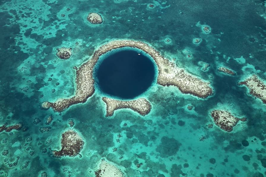 On jette l'ancre au large de Half Moon Caye îlot paradisiaque portant bien son nom. Il s'agit en effet d'un croissant - non pas de lune, mais de nature préservée -, et de la plus ancienne zone marine protégée d'Amérique centrale. On s'y baigne dans des eaux translucides révélant de formidables fonds marins - raies léopard, tortues, éponges de mer, coraux, anguilles... - que l'on explore à sa guise avec masque, palmes et tuba. Sur terre, les plages dorées laissent la place à une merveilleuse forêt littorale où l'on se délecte des allées et venues des fous à pieds rouges, pêcheurs émérites plongeant dans la mer à une vitesse folle pour faire le plein de calamars et petits poissons.