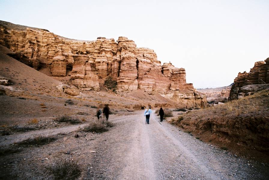 Départ pour Jarkent. Le véhicule descend de la chaîne du Tien Shan vers la steppe du sud-est kazakh, desservant au passage des vallées alpines couvertes de forêts, de plateaux semi-désertiques puis de plaines agricoles. En chemin, une marche dans le canyon de Charyn est prévue. Le lointain cousin du Grand Canyon est une succession de falaises ocre sculptées par des millions d’années d’érosion. La balade la plus prisée mène dans la Vallée des Châteaux où les parois rocheuses s'érigent en forteresses naturelles. Arrivée à Jarkent. À seulement quelques kilomètres de la frontière chinoise, la ville affiche un mélange d'influences kazakhes, ouïghoures et chinoises. Installation pour la nuit en son centre. En termes d'architecture et de design, un vrai effort a été fourni pour hisser l'adresse au niveau des attentes des voyageurs internationaux. Dans le hall, comptoir de pierre et sol imitation marbre. Dans les chambres, des teintes sobres – gris, blanc, bois clair – et un aménagement simple, sur moquette. Le matin, on prend le breakfast en petit comité.