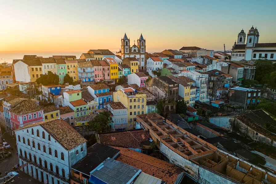 Au programme – Journée dans la ville basse de Salvador, en privé. En compagnie d'un guide, vous partez explorer la péninsule d'Itapagipe – ou "ville basse" – où se trouvent les quartiers populaires établis le long de la mer. C'est là que bat le cœur de la vie traditionnelle bahianaise : la Feira de São Joaquim, le plus grand marché de la ville. On y trouve tous les fruits et les saveurs de cette terre tropicale. On visite également l'église de Bonfim, symbiose entre rite catholique et croyances en les orixás africains ; le fort de Monte Serrat à l'entrée de la baie ; et le très typique quartier de pêcheurs de Pedra Furada, avec ses restaurants de crabes et de poissons, ses points de vue imprenables sur toute la baie et ses concerts.