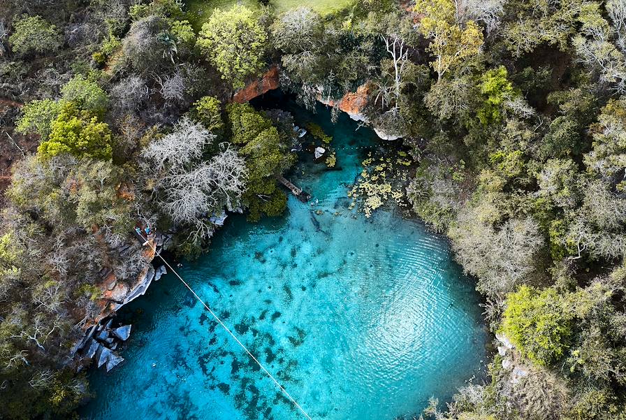 Au programme - L'est de la Chapada Diamantina. Direction Poço Azul, puits naturel qui, par un jeu de lumière (naturelle aussi), revêt un bleu absolument incroyable à certaines heures de la journée. Après le déjeuner – et une baignade –, on se met en route pour Igatu ("bonne eau" en tupi-guarani), village resté quasiment inchangé depuis l'époque de l'extraction du diamant. Sur place, on a la possibilité de visiter un ancien site d'extraction et une galerie nous renseignant sur l'histoire des lieux.