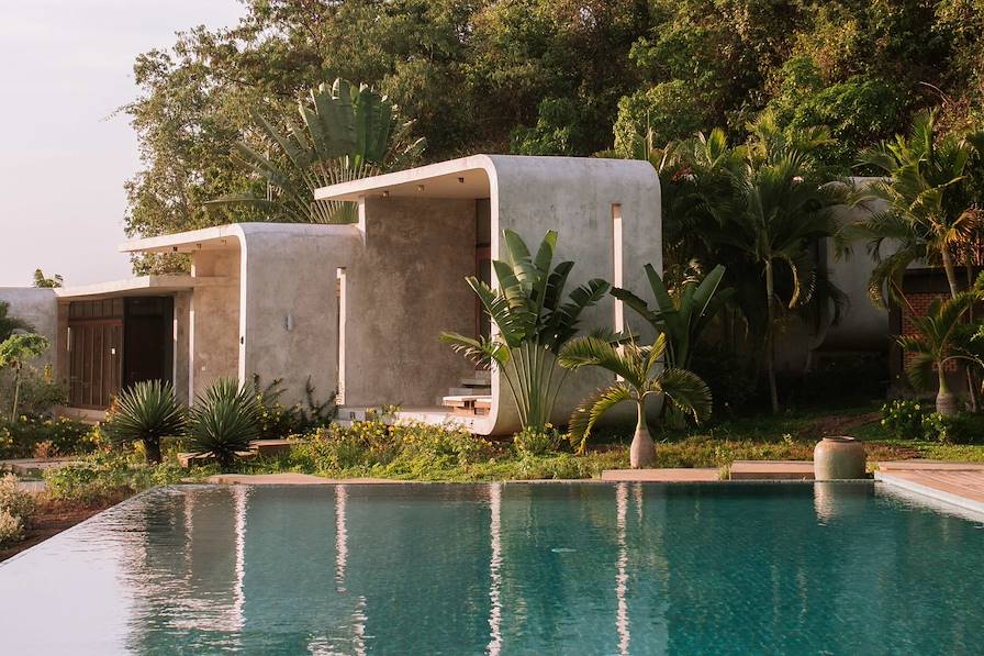 Transfert privé pour la gare où vous embarquez à bord d'un train en partance pour Kampot. À l'arrivée, transfert privé en tuk-tuk et installation pour deux nuits au sein d'une plantation d'épices – dont les fameux poivres de Kampot –, dans l'une des quatre chambres luxueuses ayant le privilège de cet emplacement. On loge au cœur d'un jardin tropical où s'est plantée une élégante maison moderniste de béton et de verre. Chacune des chambres, prolongées d'une terrasse, s'ouvre sur la plantation, son lac et la montagne du Bokor. La décoration est épurée, minimaliste, laissant le foisonnement et l'opulence à la végétation qui, de l'autre côté de la baie vitrée, semble pousser à vue d'œil. Sur place, les hôtes se partagent, dans un esprit "maison d'hôtes" très haut de gamme, salle à manger, salon, cuisine et une superbe piscine à débordement – spot de choix au moment du coucher du soleil. Ils ont aussi accès à l'exploitation agricole et au "Spice Bar", espace moderniste perché au-dessus des champs d'épices, où sont servis glaces (au poivre, entre autres), jus frais, bières, cocktails signatures et tapas bien relevées.