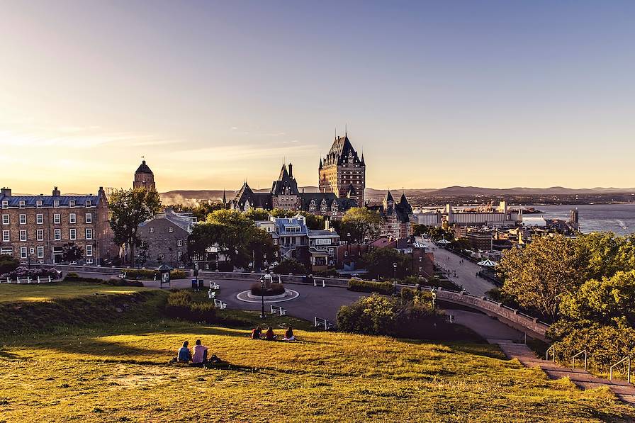 Notre suggestion pour le coucher de soleil - Dirigez-vous vers le traversier qui relie la ville de Québec à celle de Lévis, de l'autre côté du Saint-Laurent. La traversée, brève, permet de profiter d'un panorama unique sur le Vieux-Québec qui s'illumine. En été, quelques food trucks s'installent sur le Quai Paquet et des animations viennent souvent égayer la sortie. Sinon, vous pourrez toujours profiter de la vue prodigieuse sur le château Frontenac.