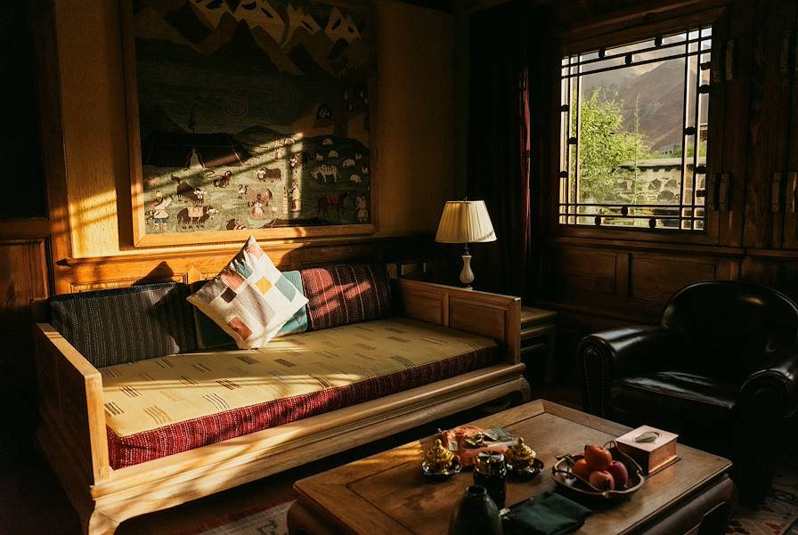 Installation pour trois nuits sur la rive nord-est du Basong Tso. L’hôtel adapte l’esprit chalet au contexte himalayen. Il offre un excellent standing. D’esprit résolument contemporain, il recourt néanmoins aux motifs traditionnels. Le résultat est équilibré, plaisant, évocateur. Une attention toute particulière a été accordée aux questions environnementales et le fonctionnement de l’établissement répond à des critères low carbon stricts. Cuisine du Yunnan, cuisine européenne, grill, effluves himalayens, les tables sont – sans jeu de mots – de haut niveau. Comme aussi le spa et la salle de gym.