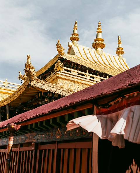 Transfert privé pour l’aéroport et vol pour Lhassa, 3650 mètres. À l'arrivée, vous êtes accueillis par un chauffeur et un guide privé. En chemin vers votre hôtel, visite du Jokhang, premier temple bouddhiste établi au Tibet (VIIe siècle), et éminent lieu de pèlerinage. Il abrite un Jowo Sakyamuni, statue en bronze doré du Bouddha adolescent. Laquelle fut apportée par l’une des épouses du roi Songtsen Gampo : soit la Chinoise Wencheng, soit la Népalaise Bhrikuti, cofondatrices du monastère au VIIe siècle.