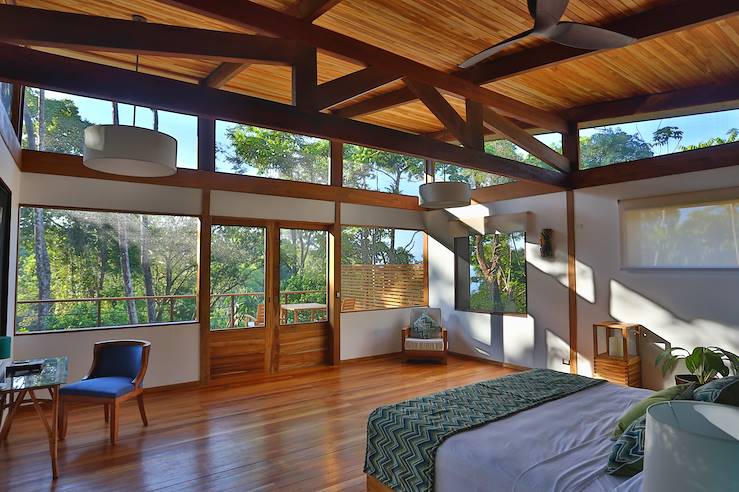 Route pour Uvita, sur la côte ouest, et installation pour trois nuits au sein d'une villa à l'architecture minimaliste, bâtie sur une impressionnante chaîne de montagnes. La route pour y accéder se mérite – les propriétaires tiennent à conserver le caractère confidentiel des lieux – mais une fois en haut, quelle surprise ! La vue, à couper le souffle, s'ouvre sur la côte et le parc Marino Ballena. La poignée de chambres arbore une décoration fraîche et branchée. La piscine à débordement est sublime, la cuisine inspirée, le calme merveilleux.