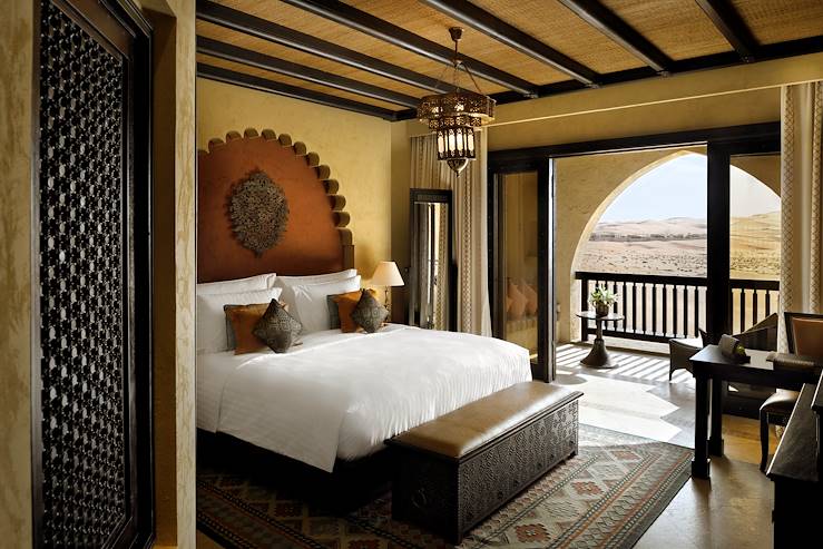 Prise en main de la voiture de location et route pour le désert d’Abou Dhabi. Après près de quatre heures de route, les majestueuses dunes du Rub al-Khali, le "Quart Vide" (la plus grande étendue de sable ininterrompue au monde), se dessinent à l’horizon. C’est ici, dans une oasis nichée au cœur de cette mer de sable, que se trouve l’essence la plus pure et ancienne de la culture émiratie. Seuls quelques aventuriers intrépides ont osé s’y aventurer, découvrant la magnificence et la puissance des dunes de Bateen Liwa. Votre villa privée, perchée au sommet de ces pentes sablonneuses, vous y attend. Alliant chic et écodurabilité, elle est dotée d'une piscine, de chaises longues, d'un patio et d'un foyer faisant face aux dunes. L’établissement met un point d'honneur à agir de façon responsable. Il adopte pour cela une politique zéro déchet, zéro carbone et sans plastique dans la mesure du possible. Cela inclut l'utilisation de moyens de transport respectueux de l'environnement, un approvisionnement en produits alimentaires locaux et éthiques, une gestion durable de l'eau, la préservation du patrimoine local et un soutien aux communautés locales.