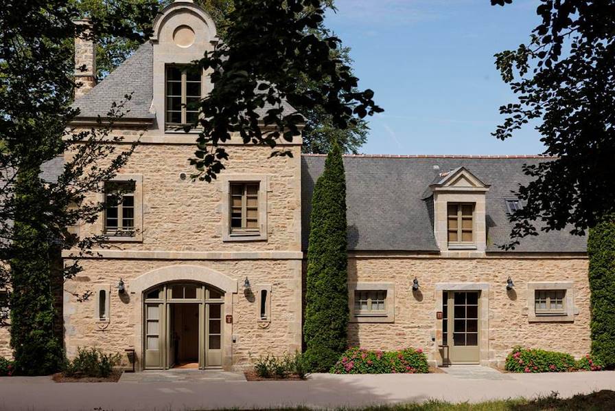 Route vers Lorient et installation pour deux nuits à une quinzaine de minutes du centre-ville, au sein d'un superbe domaine arboré de plus de vingt-cinq hectares jouissant d'une vue épatante sur la ria du Blavet. Un environnement paisible où trônent quatre bâtisses pleines de cachet : un château du XIXe siècle, une orangerie, un manoir breton du XVIIIe siècle ainsi que les écuries. Toutes possèdent une atmosphère propre mais ont en commun élégance et confort sans faille. Votre chambre, située dans le château, renvoie avec subtilité à la route des Indes à travers des éléments chinés aux quatre coins du monde – lit à baldaquin indien, riches tissus brodés – associés à des pièces contemporaines. Les anciennes écuries hébergent désormais le spa, très complet, et sa piscine chauffée de dix-sept mètres. Deux restaurants font aux hôtes des propositions singulières, sous la houlette d'un seul et même chef talentueux. Au rez-de-chaussée du château se trouve le bistrot de la maison, ouvert sur le jardin. On y sert une cuisine gourmande et de saison puisant dans un répertoire classique réconfortant. La seconde table, récompensée d'une étoile par le guide Michelin, propose une véritable expérience gastronomique tournée vers la mer et le riche terroir breton. Encornets, huîtres, langoustines mais aussi pintade, agneau, chou-fleur et artichauts sont convoqués par cette cuisine de tradition raffinée, rendue possible grâce à de petits producteurs locaux triés sur le volet. Les desserts, classiques ou inventifs, sont l'œuvre d'une cheffe pâtissière émérite.