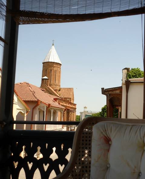 Transfert privé et installation pour trois nuits dans une maison ancienne joliment restaurée. Les galeries bleues sur la cour notamment, finement ouvragées. À l’intérieur, un certain classicisme arty qu’animent les peintures murales de Musya Qeburya. Et une atmosphère voyage Belle Époque. Le penchant design se manifeste un peu partout. Votre chambre est parfaitement équipée et confortable ; elle possède un esprit. Le restaurant modernise la tradition géorgienne avec talent et savoir-faire. Le résultat est tout à fait convaincant et peut établir les codes de la cuisine d'aujourd'hui à Tbilissi. Au bar, on vous prépare des cocktails tout à fait dignes de ce nom. Lorsque le temps le permet, on en profite dans la cour.