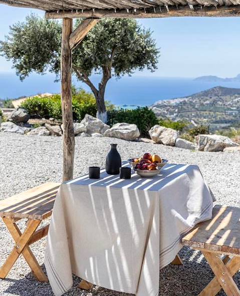 À l'arrivée à Makrigialos, installation pour quatre nuits dans un cottage situé à tout juste un kilomètre du village, dans les terres. Succombant au charme de ces anciennes maisons crétoises, le propriétaire les a restaurées dans le respect des traditions et avec un goût sûr, pour en faire de confortables petites bâtisses à l'atmosphère volontairement rustique, certaines étant même construites à flanc de rocher. Le choix est allé à la simplicité et au minimalisme avec des tomettes au sol, des murs blanchis à la chaux, des poutres apparentes et des lits creusés dans la roche. À chaque maisonnette son jardin planté d’oliviers, de caroubiers, de pins et de cactus. On séjourne ici parfaitement au calme, bien loin des foules.