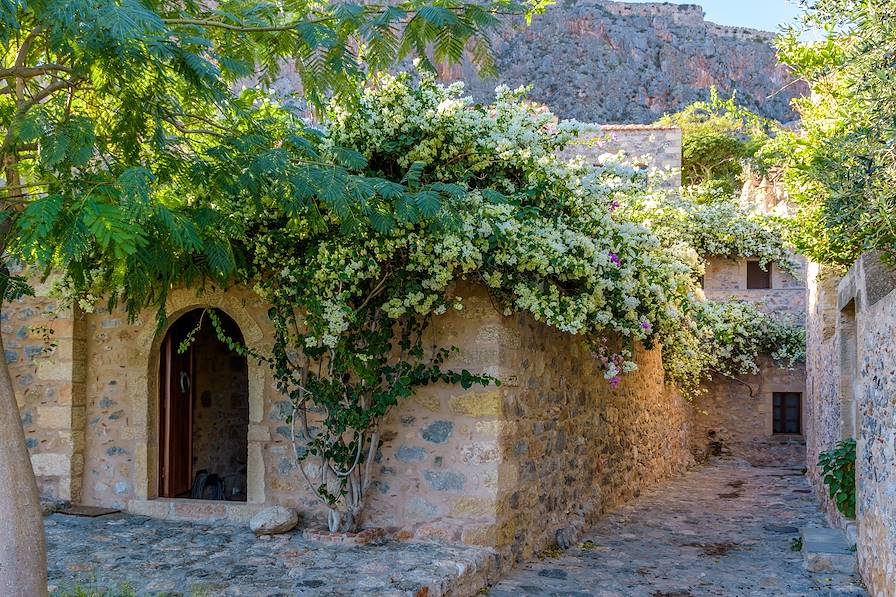 Tout autour, des paysages époustouflants. Des vergers (oliviers, citronniers) et des vignes. Les promenades dans cette espèce de Grèce quintessenciée sont une fête des sens. On les fait à cheval, à vélo, à pied. Les casaniers peuvent buller. Ou se baigner. Ou goûter le vin du domaine. Ou faire du pain. La voiture permet d’allonger son rayon d’action et de sillonner la péninsule d’Épidaure Limira. Le kastro de Monemvasia, la cité historique, est installé sur une presqu’île rocheuse. La ville fut fondée au VIe siècle. Deux cents ans plus tard, elle est aux avant-postes de la lutte contre la peste, hippocratique et déterminée. L’Histoire ne l’épargne pas et la paix de ses ruelles, de ses placettes encore médiévales, est rudement gagnée. Les remparts en témoignent et l’architecture ancienne a d’ailleurs gardé un genre militaire. L’église Agia Sofia, dans la ville haute, date du XIIe siècle ; dans la ville basse, les origines de Christos Elkomenos remontent au moins au VIe siècle. Comme Cyrano le faisait au nom de Don Quichotte, peut-être se découvrira-t-on en passant devant la maison du poète Yannis Ritsos (1909-1990). Pour se mettre en condition, on ne saurait trop recommander d'écouter les Chansons de la patrie amère, mises en musique par Mikis Theodorakis.