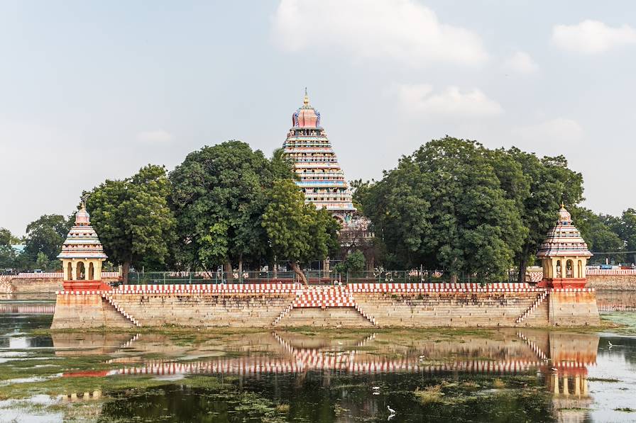 L'ancien comptoir français disparaît dans le rétroviseur tandis que le véhicule fait route vers le sud, escorté par le littoral. Progressivement, il prend ses distances avec le golfe pour glisser dans le Tamil Nadu. L'objectif : Kumbakonam. À cheval sur les rivières Arasalar et Cauvery, la cité doit sa notoriété à ses 188 temples et monastères hindous.