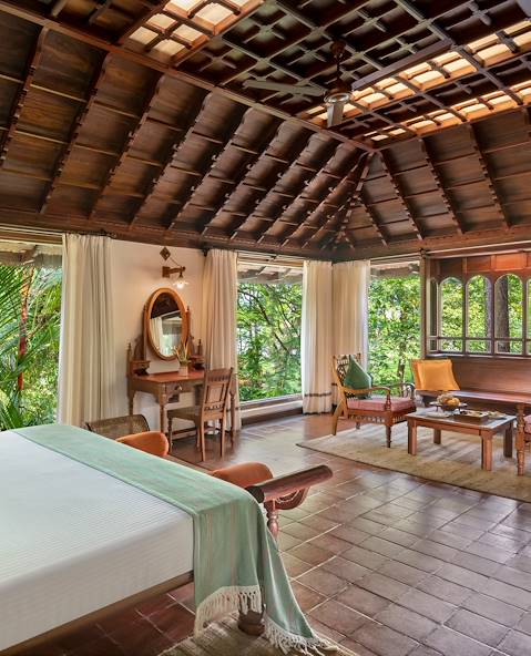 Route jusqu’à la côte à travers des paysages montagneux, des exploitations de thé et des plantations de caoutchouc. Installation pour deux nuits à Kumarakom qui s'épanouit au bord de l'un des plus grands lacs du sous-continent, le lac Vembanad, à l'extrême sud de l'Inde. Un point de départ idéal pour explorer les canaux situés au sud d'Allepey, les fameux Backwaters. Planté au cœur d’un domaine de près de dix hectares, l'hôtel se compose de deux parties : une première faite de maisons anciennes du Kerala à l'architecture traditionnelle et une autre distillant de petits bâtiments à étage le long d'une piscine de 250 mètres. Les restaurants sont une ode aux produits de la région et d’au-delà : fruits de mer et spécialités du Kerala, chinoises, mogholes ou encore nord-indiennes.