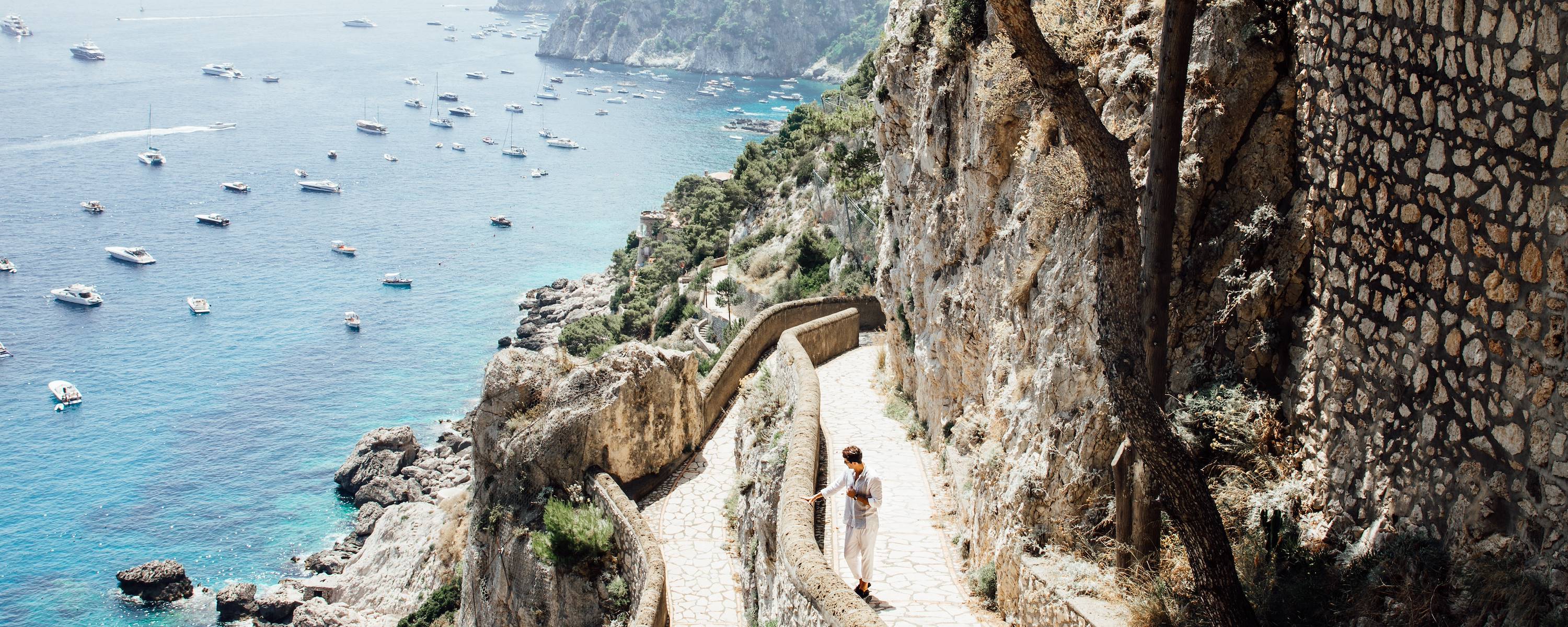 Au programme - Randonnée privée sur le Sentier des Dieux, classé au patrimoine mondial de l'Unesco. Menant au mont Sant'Angelo, cet itinéraire, qui nécessite six à sept heures de marche dans sa totalité, regorge de splendides points de vue sur la côte, de Praiano à Capri. Le sentier longe le littoral, ne présente pas de risque particulier et demande un effort modéré, tout en permettant de profiter d’un panorama incroyable sur les villages de Praiano, Montepertuso et Positano. Une randonnée dans le calme de l’altitude, au cœur de la végétation méditerranéenne – chênes verts, cistes, bruyère, romarin et autres plantes aromatiques.