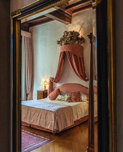 Elle se trouve sur la plus prestigieuse place de la cité, voisine de la galerie des Offices et du Palazzo Vecchio. Impossible de viser plus haut en termes de voisinage. L'hôtel se glisse sans peine dans cette atmosphère historique, ses origines remontant au XVe siècle – poutres et fresques en témoignent. À l'intérieur, aménagement et décoration marquent ce bon goût typiquement italien qui sait harmoniser éléments anciens et modernes de telle sorte qu'ils aient ensemble une vraie pertinence d'aujourd'hui. Agrémentés tantôt de salle de bains en marbre, tantôt de fresques XVIIIe, la dizaine de chambres et les deux appartements séduisent instantanément. Si la plupart ouvrent sur la place ou les toits de la ville, l'un d'eux permet même d'apercevoir le Duomo. Le service ? Impeccable, ainsi qu'en témoigne, entre autres, la présence d'un voiturier. Dans les espaces communs, un bar met à disposition eau, jus, sodas – et autres remontants pour les amateurs. Le petit déjeuner se partage autour d'une grande table commune, pour débuter la journée de manière conviviale, ou dans l'intimité de sa chambre pour ceux qui le souhaitent. Placé comme on l'est, il ne reste plus ensuite qu'à se laisser happer par les beautés de la ville.