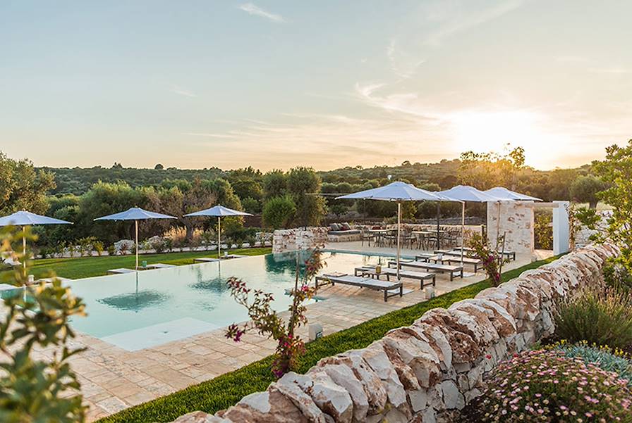À l'arrivée à Cisternino, on prend ses quartiers pour trois nuits dans un trullo – mur circulaire de pierre blanche et chapeau pointu de pierre sèche. Votre hôtel est en effet constitué de plusieurs de ces édifices pastoraux emblématiques des Pouilles. C’est beau en soi mais, en plus, la pureté vernaculaire s’accorde très bien avec le design contemporain minimaliste. Les matières sont de toute beauté, les tons naturels. Bref, on y est bien logé, avec tout le confort voulu et, en prime, le sentiment justifié de toucher à la vérité du pays. Le chef fait du restaurant une table digne de ce nom ; sa cuisine exprime toute la finesse dont ce terroir est capable. La piscine extérieure invite au délassement, tout comme le spa de la maison. Les vélos prêtés aux hôtes annoncent de belles balades.