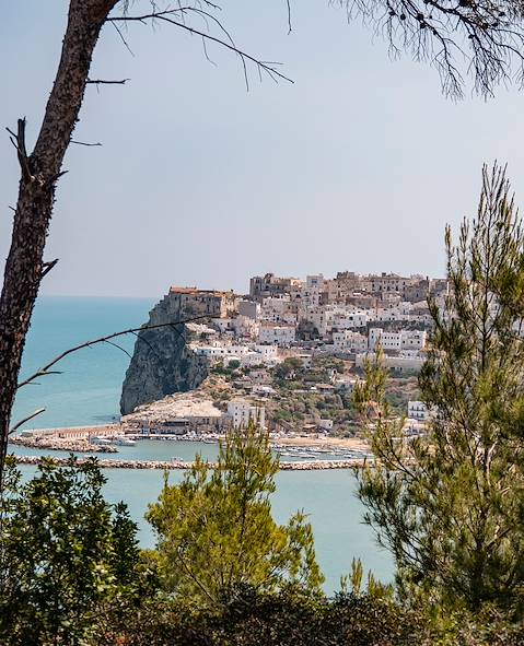Au programme - Les îles Tremiti. Ce petit archipel est composé de cinq îles et îlots intégrés au parc national du Gargano. Il se trouve à une heure de bateau au nord du promontoire éponyme. Des couverts de pins d’Alep aux fonds marins, leur nature est encore intègre. Très beaux spots de plongée à la clé. Depuis Vieste, on rallie San Domino en ferry. C’est l’île qui concentre la majeure partie de la petite population permanente des isole Tremiti et celle qui possède une plage de sable. Puis, on monte dans une embarcation plus petite pour rejoindre San Nicola, où se trouve un monastère bénédictin fortifié qui connut un âge d’or au XIe siècle, Santa Maria a Mare. En chemin, on pique une tête dans les eaux transparentes – un petit bonheur qui peut se répéter plusieurs fois. Déjeuner à bord. De retour à San Domino, visite du village et ferry retour pour Vieste.