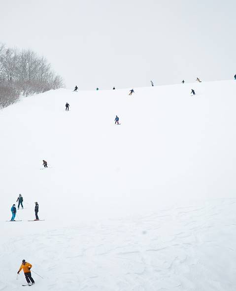 La station d'Echigo-Yuzawa se révèle particulièrement populaire auprès des Tokyoïtes. Un certain nombre de facteurs l'expliquent. La proximité avec la capitale, tout d'abord. La logistique de transport facilitée depuis la mise en place d'une ligne ferroviaire (moins de 2h en train direct) ensuite. Et, enfin, un ingrédient essentiel à toute échappée givrée : une abondance de neige, poudreuse et duveteuse. A fortiori quand celle-ci se dépose, comme ici, plusieurs mois durant l'hiver. Avec plus d'une dizaine de pistes de ski, les adeptes débutants comme confirmés s'en donnent à cœur joie. Puis, après une journée à dévaler les pistes, ils sont heureux de se glisser dans les bains chauds qui ont fleuri aux quatre coins de la ville, issus de sources aux bienfaits ancestraux.