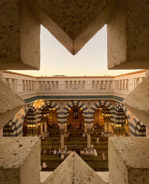Notre suggestion pour la soirée - La fin de journée à Médine est marquée par les appels à la prière auxquels répondent des foules de pèlerins en gagnant la mosquée du Prophète. Si les intérieurs sont réservés aux musulmans, l’atmosphère qui règne sur la vaste esplanade ainsi que dans les alentours est saisissante.