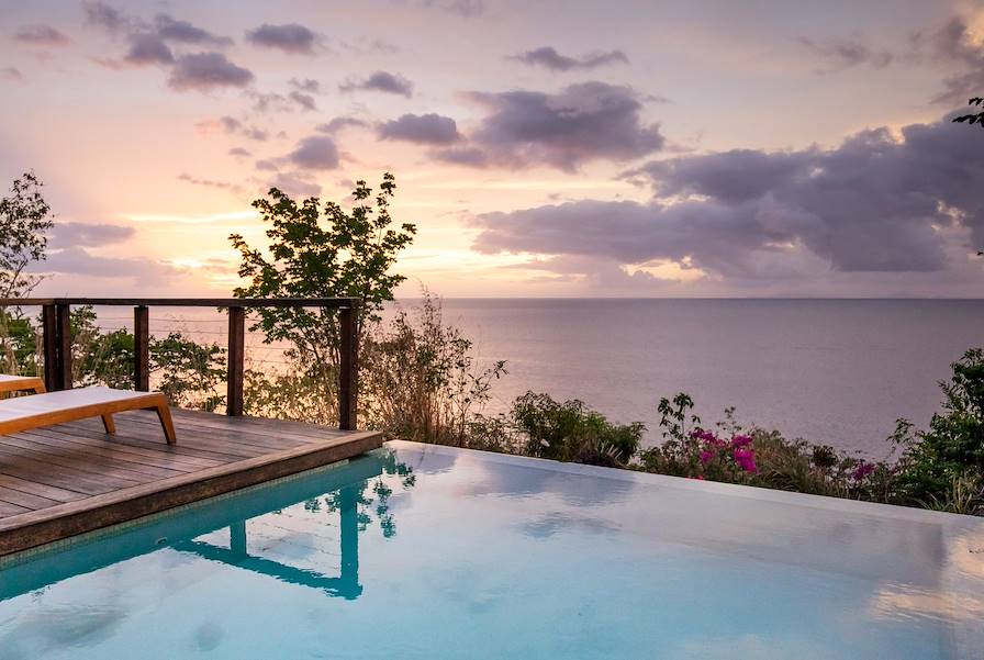 Dans un tel écrin de nature et de confort, les journées s'écrivent d'elles-mêmes : cours de yoga au petit matin, fruits tropicaux grignotés depuis le hamac, premier barbotage et lecture sur sable fin – deux superbes plages sont facilement accessibles depuis votre villa –, snorkeling sur le Champagne Reef... Après le déjeuner, on prend volontiers un cours de cuisine ou l'on part randonner le long du sentier du lac Bouillant et jusqu'à de cascades cachées entre les arbres. On pourra également nager aux côtés des baleines, plonger, de nuit, avec masque et tuba ou, en compagnie du chef du restaurant, faire le tour des jardins comestibles de la propriété. Autant d'expériences mémorables à vivre en tout petit comité.