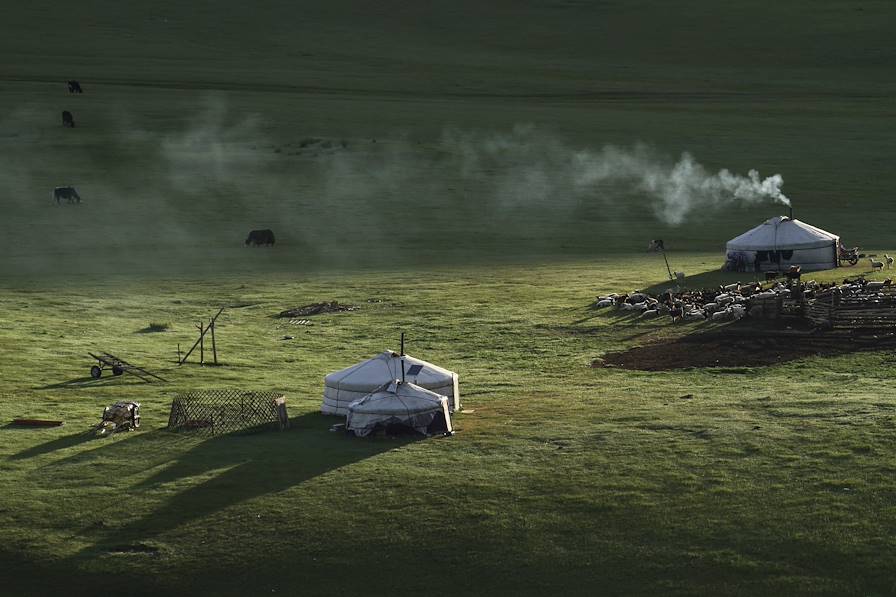 Nuit non loin de là, dans un camp de yourtes. On s’initie au feutre, à la rotondité, à l’esthétique du logement nomade. En on s’étonne d’un confort et d’une plaisance insoupçonnés. Les sanitaires sont montés à part ; c’est quasi partout la règle. Au restaurant, cuisine mongole raisonnable.