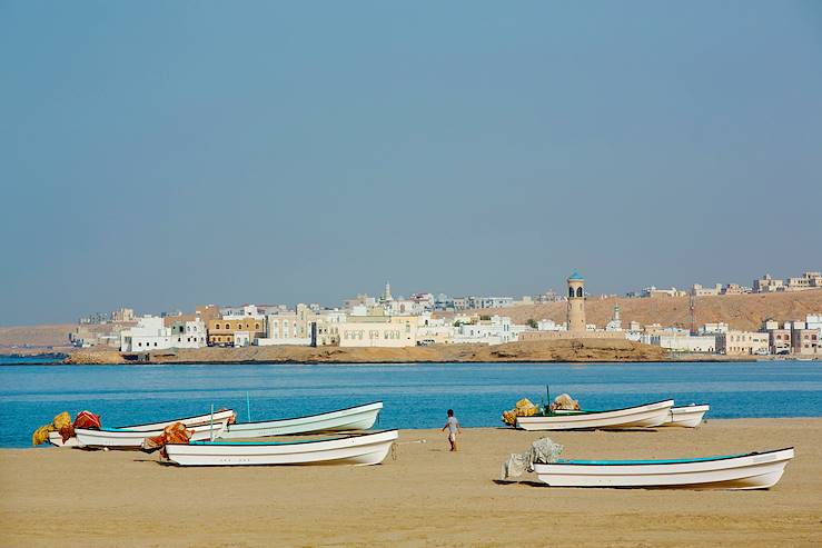 A l’arrivée à Sur, installation pour la nuit dans un petit hôtel niché dans ce joli village de pêcheurs où il fait bon flâner. L’esprit de cette étape n’est pas le grand luxe mais plutôt un confortable point de chute, agrémenté d’une piscine. Village historique du sultanat, sur les bords du golfe d’Oman, Sur fut pendant l’Antiquité une escale de marins et de pirates faisant cap sur l’Afrique. Posée entre une lagune et les contreforts montagneux de l’Hajar ash-Sharqqi, la ville est réputée pour son port et ses chantiers navals à proximité du charmant village d’Al-Ayga, d’où sortent les fameux dhow (barques en bois) traditionnels. La route du littoral est belle, égrainée de villages de pêcheurs et de magnifiques plages.
