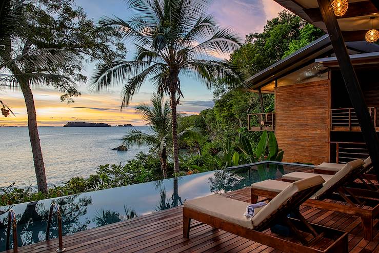 Transfert privé jusqu'à l'aéroport et vol rapide pour Isla Colón, dans l'archipel de Bocas del Toro. À l'arrivée, nouveau transfert privé et installation pour trois nuits au sein d'un véritable refuge tropical. Inspiré par les architectures thaïlandaise et balinaise, votre hôtel est un sanctuaire de calme entouré d'un jardin à la végétation luxuriante, où il n'est pas rare de croiser des singes ou des paresseux. Pour accéder à votre chambre, moderne et épurée, vous empruntez un grand escalier rappelant ceux des temples hindouistes. L'établissement est tout entier dédié au bien-être des hôtes et est notamment doté d'un spa de haut niveau. On se fait masser en plein air, on investit le grand deck pour une séance de yoga ou de méditation. La baignade est à portée de tongs, la plage ne se trouvant qu'à quelques dizaines de mètres. Là, on trouve au beach club chaises longues et cocktails, attirail tout indiqué pour contempler le coucher du soleil.