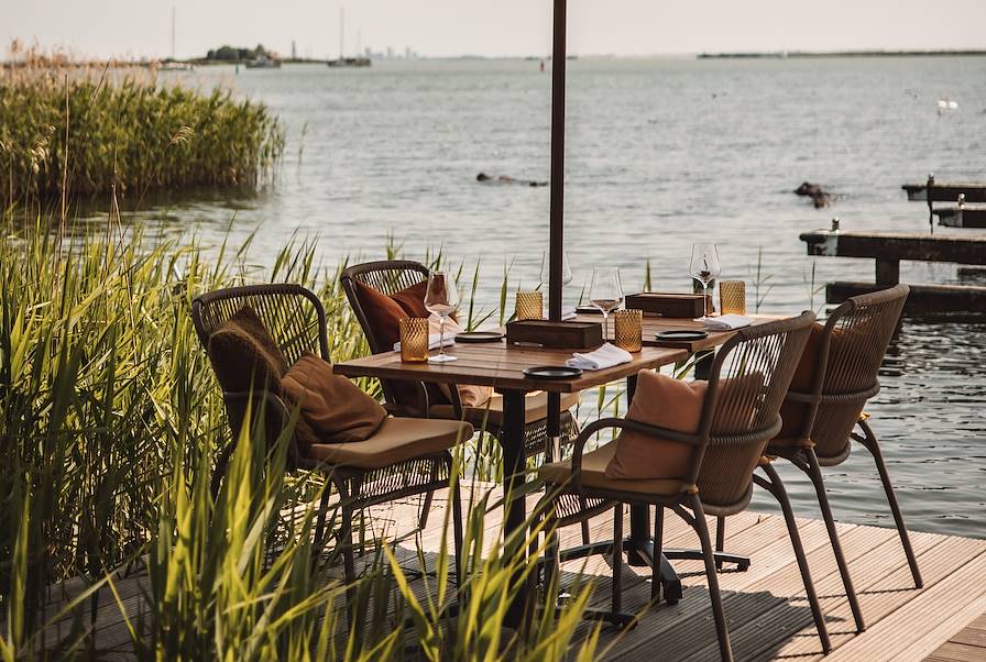 Transfert privé de 15 minutes et installation pour deux nuits dans une adresse pittoresque en bordure du lac IJ, aux portes de la capitale. On se croirait dans un tableau du siècle d'or hollandais. D'ailleurs, la maison date du XVIIe siècle. Autour, le village et le paysage lacustre sont pleins de charme champêtre, de tranquillité. À l'extérieur, le parement est clair. Dedans, les tons sont plus concentrés : des bruns, des ocre, terre de Sienne, vert bronze ou olive. Le bois sombre et ciré des meubles ou de la charpente ajoute à l'atmosphère. Et le vélo est, bien entendu, le véhicule privilégié des promenades alentour.