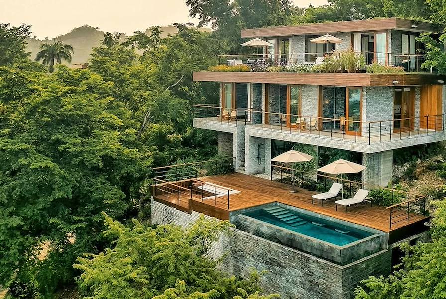 Route pour Las Galeras, sur la péninsule de Samaná, et installation pour trois nuits dans un petit hôtel confidentiel caché au cœur de la forêt tropicale. L'établissement ne compte qu'une poignée de villas privées, conçues comme des refuges intimistes où le luxe se conjugue à la nature, et dévoile une vue saisissante sur la baie de Rincón. Votre maison associe lignes contemporaines et matériaux locaux ; elle dispose d'une cuisine équipée et de généreux espaces de vie ouverts sur l’extérieur, dont une terrasse panoramique et une piscine privative. Le domaine propose un service de conciergerie attentif, un restaurant à la carte valorisant les produits de la région et des expériences sur-mesure, entre détente, bien-être et exploration. En somme, on prend ses quartiers dans un lieu confidentiel, pensé pour les voyageurs en quête de sérénité et d’horizons préservés.