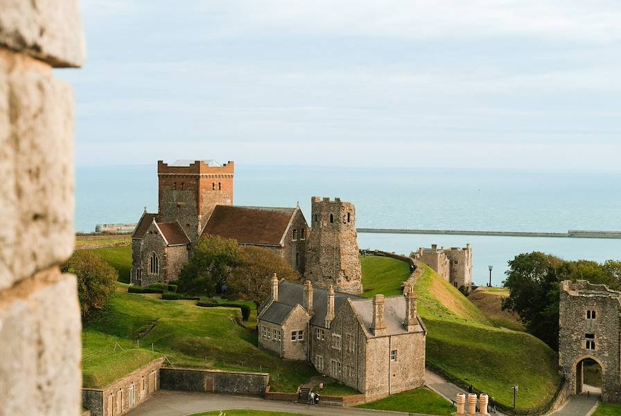 À ne pas manquer en chemin - Douvres, ville souvent boudée car en partie détruite par les bombardements allemands durant la Seconde Guerre mondiale, mais qui gagne à être connue. Port ancestral et ville balnéaire à l'histoire riche, elle est encadrée par une citadelle et un château médiéval. Ce dernier, modifié par Guillaume le Conquérant après la célèbre bataille de Hastings (1066) puis par Henry II, fut construit sur un précédent château, lui-même construit sur un phare romain toujours visible. On pourra aussi flâner sur l'agréable port de plaisance ou le long des falaises de calcaire qui dévoilent des vue imprenables sur la Manche. À 35 petits kilomètres se trouve la France.