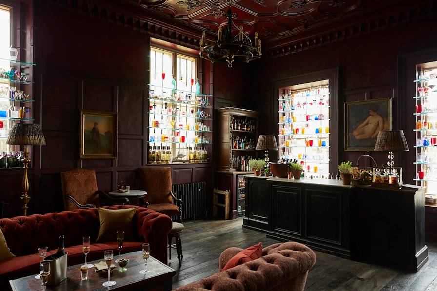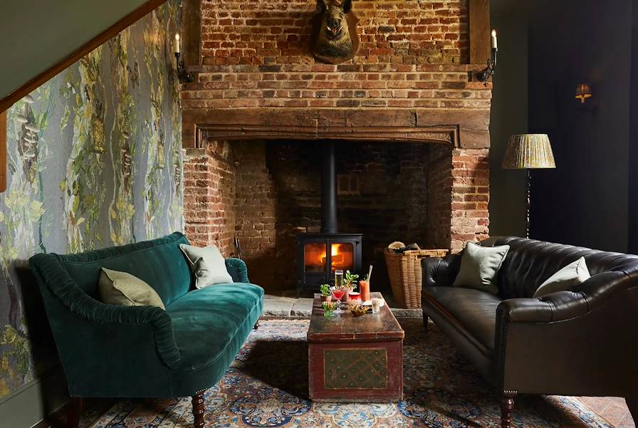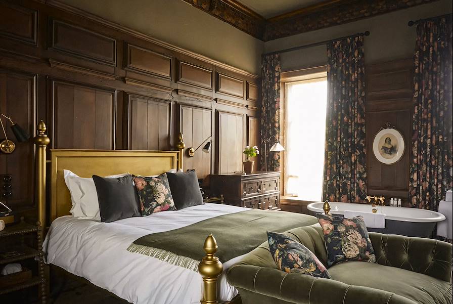 Installation pour trois nuits au sein d'un hôtel-pub blotti dans un vaste parc à cerfs – un lieu incroyable de caractère et de calme, alliant la convivialité d'un pub historique à celle d'une maison de campagne à l'anglaise. Le parc, créé au XVIIIe siècle par une importante famille de la région, s'est transformé au fil du temps et des différents paysagistes qui y ont officié. La belle bâtisse de pierre convertie en hôtel était autrefois une ferme. De son passé, l'établissement a conservé un cachet absolument fou, dans l'esprit d'une auberge accueillante et cosy dont seul le British countryside a le secret. Parquets foncés, lourds rideaux, cheminées, canapés Chesterfield joliment patinés, tableaux et tapis anciens, lumière feutrée... L'atmosphère est chaleureuse, aussi bien dans les salons, moelleux, qu'au pub où trônent billard et jeu de fléchettes. Votre chambre, elle aussi bourrée de charme, est superbement décorée et meublée. On y opère un petit retour dans le temps, tout en appréciant un confort tout contemporain.