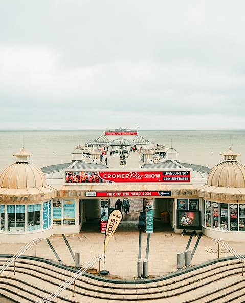 À ne pas manquer - Les plages du Norfolk, qui s'étirent sur 72 kilomètres, et notamment : Cromer Beach, qui borde la ville éponyme, connue pour sa salle de spectacle dynamique, le Pavilion Theatre, située tout au bout de la jetée, mais aussi pour la pêche au crabe – à vous les délicieux crab sandwiches ; Horsey Gap, réputée pour son importante colonie de phoques qui viennent s'y reproduire chaque année entre octobre et février – plusieurs plateformes permettent d'observer les animaux sans les déranger ; Happisburgh, longue plage reconnaissable à son phare aux rayures rouges et blanches, le plus vieux en activité d'East Anglia, géré de manière indépendante par la communauté locale ; Wells-next-the-Sea, à l'atmosphère familiale et aux jolies cabines de plage colorées ; Holkham Beach, dans la Holkham National Nature Reserve, plage sauvage et bordée de pins et de dunes ; Brancaster, étendue de sable infinie dévoilant à marée basse l'épave du SS Vina, cargo écossais construit en 1894 et réquisitionné par l'armée durant la Seconde Guerre mondiale – depuis, malgré plusieurs tentatives, les marées ont rendu impossible le retrait de la plage de l'épave. Autour vous attendent de jolies balades dans les marais salants où observer de nombreux oiseaux.