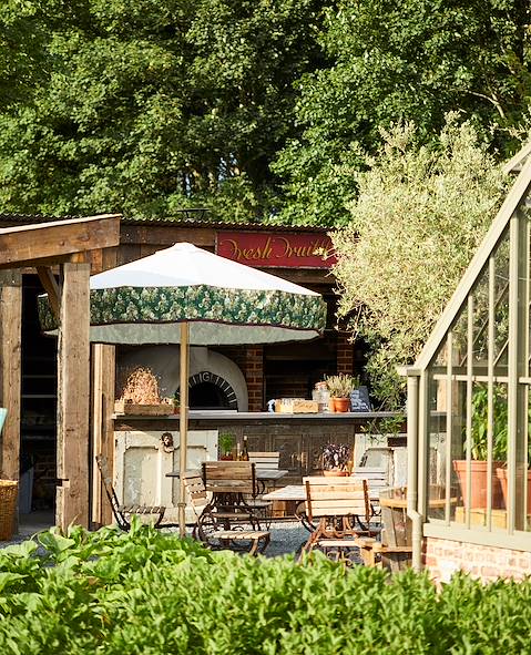 À 11h précises, alors que la campagne anglaise hésite encore entre humidité matinale et douceur de la mi-journée et que, au restaurant, le délicieux fumet du déjeuner a déjà pris le pas sur celui du non moins délicieux breakfast, le jardinier en chef du domaine fait son apparition. Veste de travail élimée sur le dos, sécateur en poche et sourire franc sur le visage, il nous enjoint d'un "follow me" à lui emboiter le pas jusqu'à son royaume : le potager. À ses côtés, on longe les raised beds (bacs surélevés) où poussent des variétés anciennes, on respire les effluves d’herbes fraîchement coupées. S'il pleut, on se réfugie sous l'une des serres, tandis que notre guide nous explique qu'ici, tout est pensé pour être cueilli le jour même, parfois à l’heure même. Il sélectionne avec soin une tige qu'il coupe et nous tend : de la menthe-chocolat ! Il nous parle aussi des sols, des saisons et des abeilles que l’on entend bourdonner aux alentours. On reprend la déambulation et, au détour d’une allée, on tombe sur les fruit cages où mûrissent les baies à l’abri des oiseaux, puis sur les polytunnels où les légumes les plus délicats poussent sous un voile translucide. Un moment plein de grâce et d'enseignements qui nous permet de mieux comprendre le menu du restaurant dont chaque assiette se compose d'un petit bout de ce jardin.
