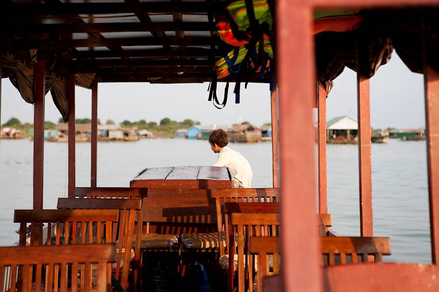Déjà prévu au programme - Le village lacustre de Preak Toal. Le Tonlé Sap, premier lac d’eau douce d’Asie du Sud-Est, contribue à la régulation naturelle du cours du Mékong. Un monument naturel. Le village de Preak Toal, mi-planté sur pilotis mi-flottant, est établi sur un cours d’eau débouchant dans le lac. Vous y allez en bateau avec un guide francophone privé. La pêche occupe, on ne s’en étonne pas, la majorité des villageois. Cependant, artisans et commerçants ont eux aussi leurs affaires. Les enfants courent partout, vont et viennent autour de l’école, mènent leurs barques comme de vieux mariniers. Et sourient de ce sourire proverbial et non feint. Aux entours, on peut apercevoir le pélican à bec tacheté, l’ibis à tête noire, le grèbe castagneux, le marabout chevelu, le tantale indien, qui ont dans la réserve ornithologique toute proche un refuge sûr. Ensuite, street food by night à Vespa. On enfourche l’engin - derrière un conducteur retaillé - pour faire le tour des marchés de nuit et de la street food locale. C’est pétulant, bigarré et inattendu. Ces petits plats qui se font sur un coin de table et un bout de barbecue étonnent par la justesse et la saveur. Viande, poisson, coquillages, légumes, fruits, toutes les productions régionales se trouvent transformées en direct pour les chalands. A la plus appétissante échoppe, on s’arrête et on dîne. Sortie avec un guide anglophone.