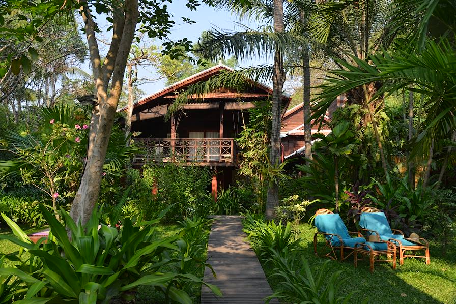L’accès au sable cuivré de la plage est donc une affaire de secondes ; son usage ne réclame pas de longues explications ! Des arbres l’ombragent, des chaises longues le meublent discrètement, le beach shack sous palmes sert cocktails et snacks. Activités nautiques. Les récifs de l’archipel offrent de beaux spots de snorkeling : poissons-demoiselles, hippocampes, poissons-perroquets, raies pastenagues à taches bleues, rougets, étoiles de mer, etc. Quant aux promenades dans la jungle de l’île, elles permettent d’en apprécier la richesse floristique et, peut-être, d’apercevoir un dicée à dos rouge, un oiseau bleu des fées, un shama à croupion blanc ou un calao pie. Au retour, on se glisse avec délice dans la piscine de l’hôtel. Participer à un cours de yoga ne peut faire que du bien à son équilibre psychomoteur. Une balade à vélo aussi, d’une autre façon. En prenant le bateau, on va à Kep, chef-lieu des plaisirs balnéaires cambodgiens et ville du crabe bleu. Lequel est accommodé au poivre de Kampot, dont les plantations se visitent aisément.