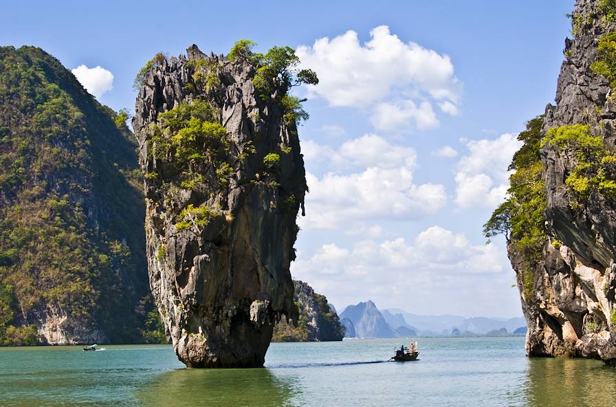 Au programme - La baie de Phang Nga, en bateau privé. Avec un guide anglophone, vous embarquez sur un long-tail boat traditionnel. Il vous mène sur un chemin de toute beauté : au large de l'île de Koh Talu, avec son arche et sa colonie de chauve-souris géantes, entre les îlots de Ma Kram et leurs petites plages désertes ou encore au sud de Koh Kudu Yai, où une crique se ferme par d’impressionnantes dents rocheuses. Baignade, farniente et photos viennent habiller les temps de pause.